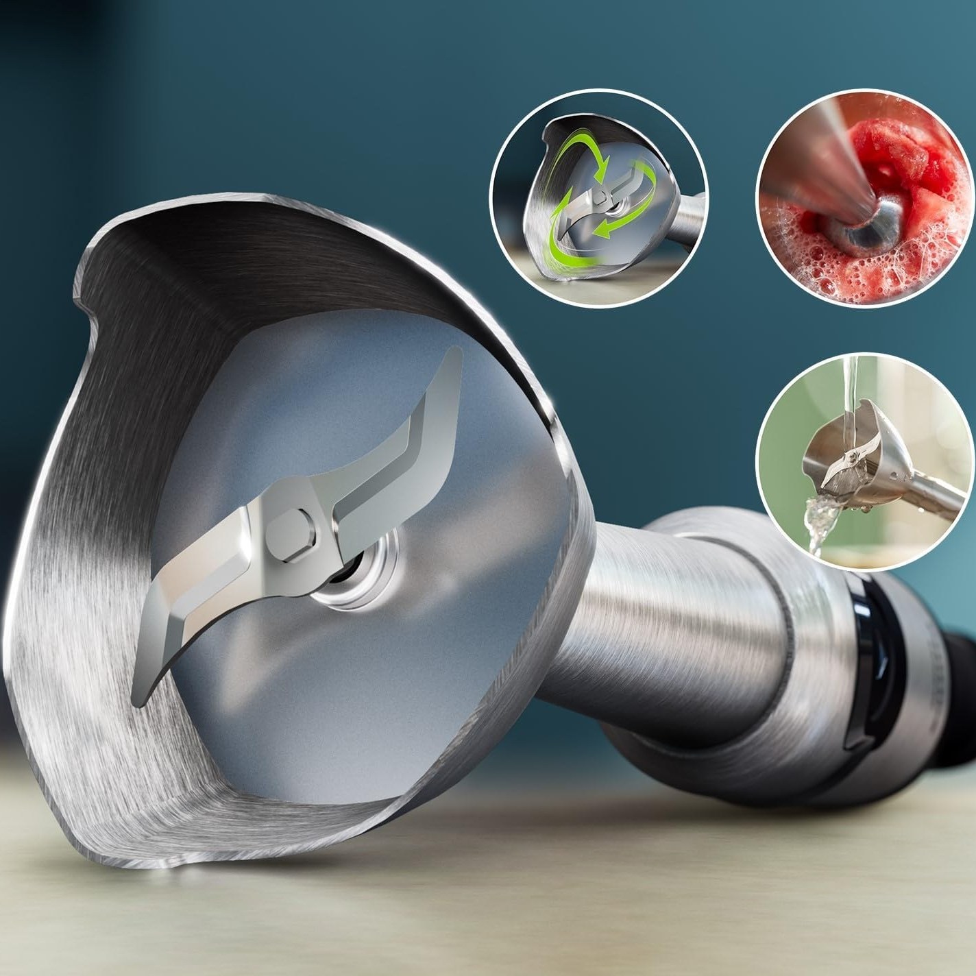 همزن بالونی از جنس استیل ضد زنگ برای هم زدن سفیده تخم مرغ، خامه یا مخلوط کردن خمیر پن کیک Anti-Splash : طراحی منحصر به فرد ضد پاشش ProMix : طراحی سری گوشت کوب برقی به شکل مثلث برای مخلوط کردن سریع تر و بهتر مواد تکنولوژی SpeedTouch: برای کنترل قدرت بدون تغییر تنظیمات فقط با دکمه توربو