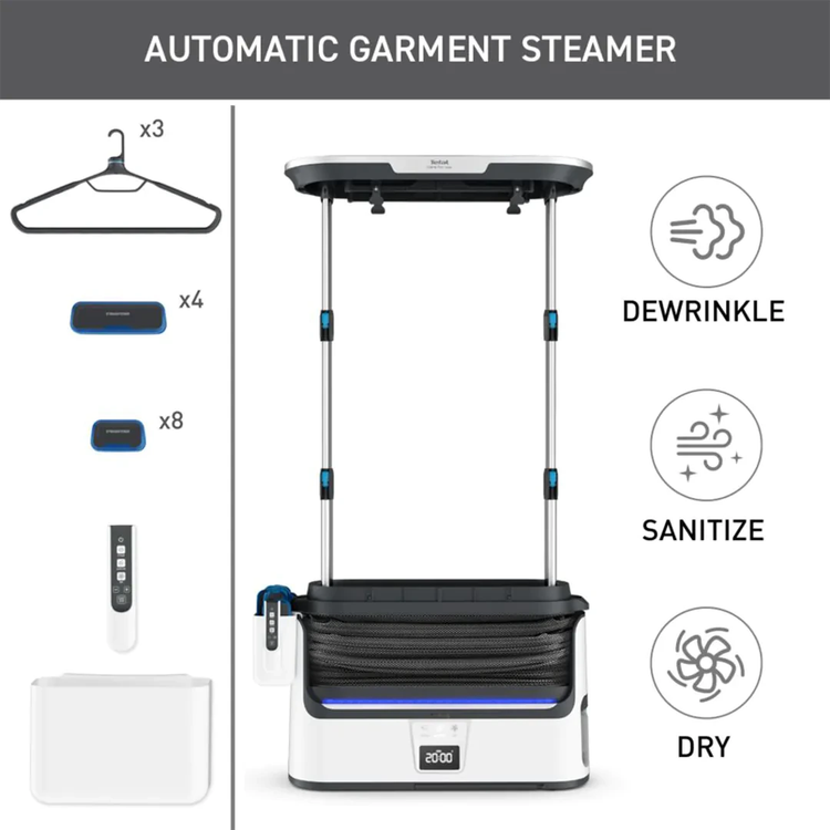 ظرفیت انجام فرایند بخاردهی هم زمان رو سه لباس, ,, مدت زمان چروک زدایی ده دقیقه, ,, مناسب برای بخاردهی تمامی پارچه ها
