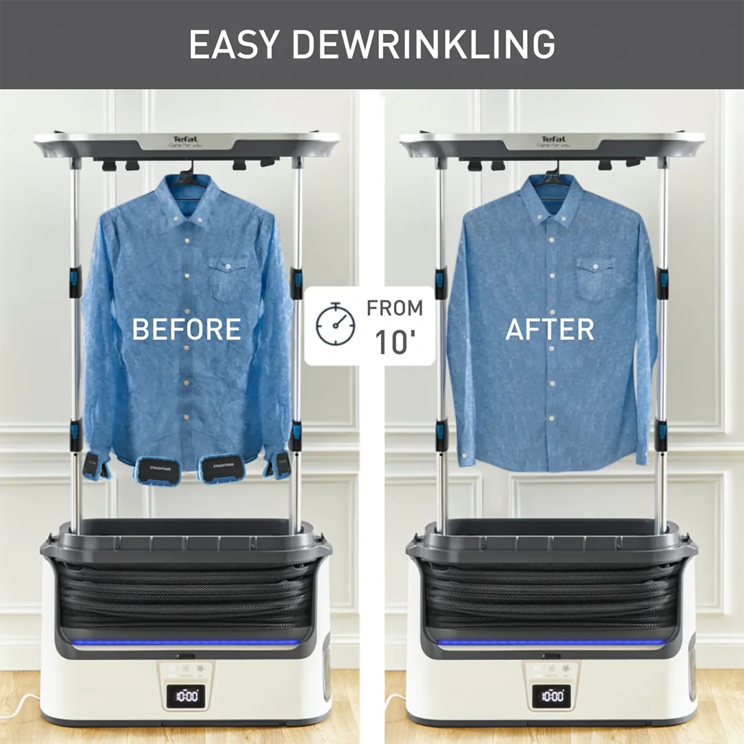 ظرفیت انجام فرایند بخاردهی هم زمان رو سه لباس, ,, مدت زمان چروک زدایی ده دقیقه, ,, مناسب برای بخاردهی تمامی پارچه ها