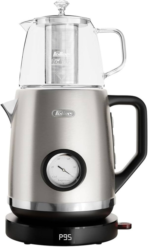 شرکت فلر آلمان یکی از برندهای مطرح و موفق در زمینه تولید لوازم خانگی است. یکی از محصولات این شرکت، چای ساز مدل TS290 میباشد که با قدرت 2200 وات، امکان گرم شدن سریع آب را فراهم میکند. بدنه این دستگاه طراحی مینیمالیستی داشته و از استیل ضد زنگ با کیفیت بالا ساخته شده است. کف کتری دارای یک المنت است که با یک پوشش فلزی محافظت میشود. ظرفیت کتری این چای ساز 1.7 لیتر است که برای تهیه چای برای خانواده کافی است. این چای ساز دارای یک قوری شیشهای با ظرفیت 1.2 لیتر است که یک تفالهگیر از جنس استیل ضد زنگ درون آن قرار دارد. پایه چای ساز مجهز به محفظه جمعآوری سیم است تا دستگاه به راحتی در آشپزخانه جا شود. چای ساز TS 290 فلر دارای قابلیت چرخش 360 درجه برای بلند کردن آسان کتری میباشد. دمای دقیق آب از طریق نمایشگر LED قابل مشاهده است. وجود المنت استریکس نیز به بهبود کیفیت و کارایی این چای ساز کمک میکند.