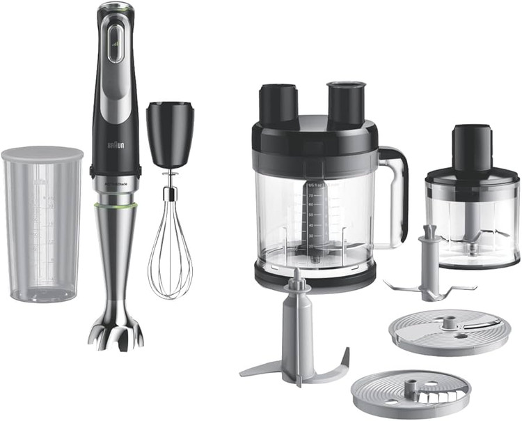 عملکردها : پیمانه درجه بندی شده برای مخلوط کردن به همراه درپوش, خردکن کوچک مناسب سبزیجات، آجیل، پیاز، گوشت، پنیر و …, غذاساز چند منظوره بزرگ, همزن بالونی از جنس استیل ضد زنگ برای هم زدن سفیده تخم مرغ، خامه یا مخلوط کردن خمیر پن کیک, یخ خردکن