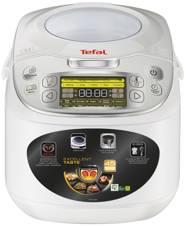 بدنه این دستگاه از سیلیکون مرغوب ساخته شده و ظرف داخلی آن با پوشش نچسب تفلون پوشیده شده است. پلوپز Tefal RK8121 همچنین دارای پنل و نمایشگر دیجیتالی LCD است که امکان تنظیمات مختلف را بر اساس نیاز شما فراهم میکند.
