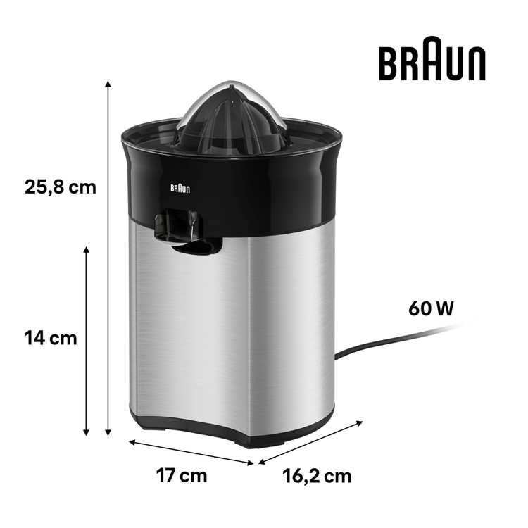 آب مرکباتگیری براون مدل CJ5050 دستگاهی کاربردی و مؤثر برای استخراج آب انواع مرکبات مانند پرتقال، لیمو و لیموترش است. این دستگاه با توان 60 وات، دارای سیستم چرخش دوطرفه است که بهطور کامل و سریع آب مرکبات را استخراج میکند.