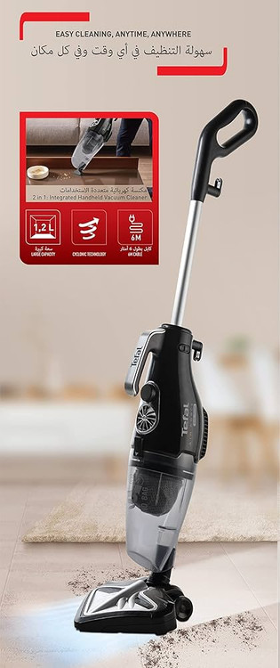 جارو برقی ایستاده تفال UY5115 محصولی با کیفیت می باشد که توسط برند تفال تولید شده است. این برند در حیطه ی تولید لوازم برقی خانگی جزو بهترین برند ها به شمار می آید و همواره سعی دارد که بهترین تولیدات را ارائه بکند. به همین منظور نیز این جارو برقی ایستاده تفال مدل UY5115 از کیفیت ساخت بسیار بالایی برخوردار می باشد. جنس بدنه ی این جارو از پلاستیک ساخته شده است و رنگ بدنه ی آن نیز مشکی می باشد. بدنه ی این جارو برقی، جدای از مقاومت بسیار بالایی که دارد، به سبب رنگ شیک و خاصی که از آن بهره می برد، دارای ظاهری شیک، زیبا و جذاب نیز می باشد.