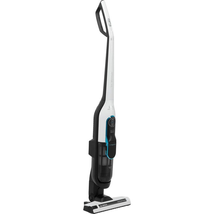جارو شارژی بوش BOSCH مدل BCH86SIL1 دستگاهی با ظاهری زیبا به رنگ سفید و مشکی بوده که به صورت بدون سیم طراحی شده و موجب کارکرد بالا و بدون محدودیت در این جارو شارژی شده است. موتور دستگاه بسیار پر قدرت بوده و سبب طول عمر بالا به همراه بهترین عملکرد میشود. بدنه جارو شارژی بوش به صورت ارگونومیک و قابل انعطاف طراحی شده و میتوان به راحتی و بدون خم شدن ، فرش ، موکت ، پارکت و حتی نقاط دور از دسترس مانند زیر مبلمان را نظافت نمود. این دستگاه دارای 3 سطح مکش میباشد که متناسب با میزان کثیفی و نوع سطوح میتوانید میزان مکش را توسط کلید کشویی روی دسته تنظیم نمایید. داخل پارویی دستگاه یک برس مکانیکی AllFloor Highpower تعبیه شده که حدود 5000 دور در دقیقه کار میکند و موجب تمیزی ایده آل انواع سطوح از جمله پارکت و فرش میشود. باتری 28 ولتی جارو شارژی 86SIL1 از نوع LI-ION بوده که قابلیت استفاده مستمر تا 60 دقیقه را دارد و در مدت زمان 3 الی 6 ساعت به صورت کامل شارژ میشود. مخزن دستگاه نیز دارای ظرفیت 0.9 لیتر بوده که حجم زیادی گرد و غبار را در خود جای میدهد و در صورت پر شدن توسط نشانگر روی بدنه شما را مطلع میسازد. فیلتر بهداشتی دستگاه نیز برای خروج هوای پاکیزه تعبیه شده و در صورت کثیف شدن توسط هشدار دهنده LED روی بدنه زمان شستشوی فیلتر را اعلام می نماید.