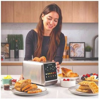 دارای حافظه برای ذخیره تنظیمات موردعلاقه, قابلیت تُست کردن تک برش نان درون یکی از اسلات ها, کلیدهای لمسی: روشن/خاموش – کنسل کردن – تُست کردن یک عدد نان – ذخیره تنظیمات – یخ زدایی – گرم کردن مجدد – برنامه های خودکار