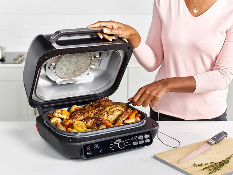 لوازم جانبی : 1 عدد بشقاب گریل, 1 عدد پروب هوشمند برای سنجش دمای پخت, 1 عدد سبد کریسپر, 1 عدد صفحه تخت, 1 عدد محافظ اسپلتر