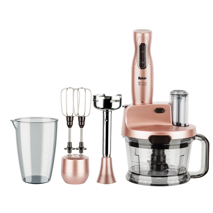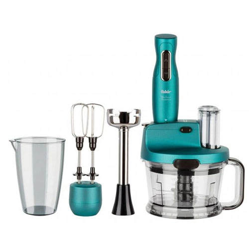 اقلام همراه: دفترچه ی راهنما, ليوان, سری گوشت کوب, ظرف خردکن, درپوش خردکن، سری همزن دو قلو، دیسک های رنده و ورقه کردن، خرد کن و تیغه S شکل، ظرف مدرج 900 میلی لیتری