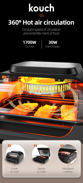 برخورداری از ماژول گرمایشی دوگانه برای پخت دقیق تر بوی کم در حین پخت قابلیت اتصال به گوشی هوشمند نشانگر میزان پخت استیک در ۵ سطح