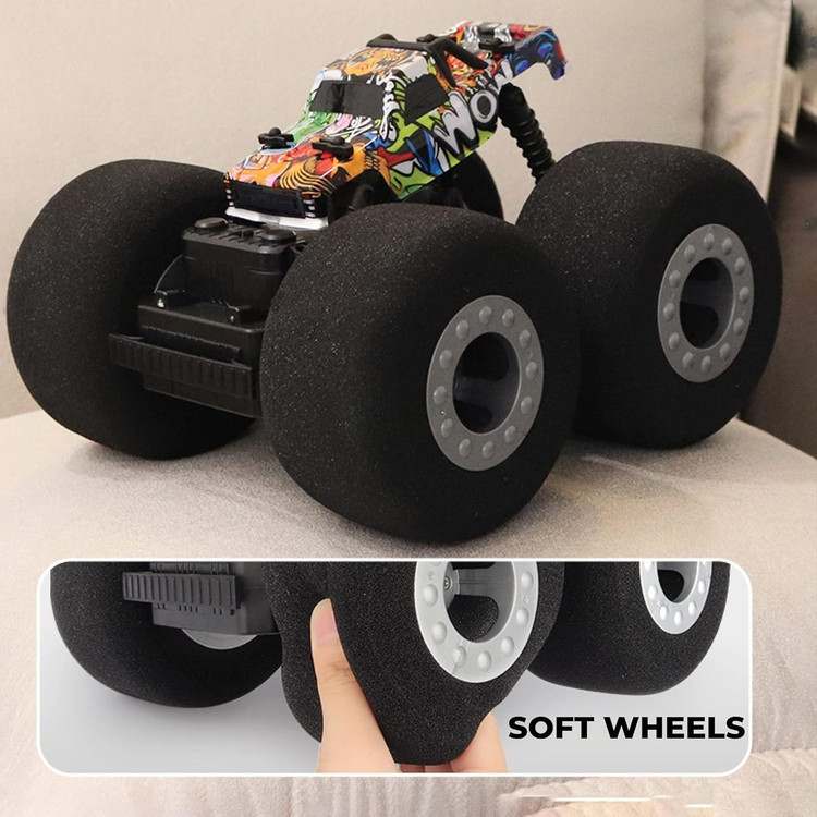افکت نور، چرخش 360 درجه، کنترل از راه دور 2.4 گیگاهرتز، حالت استانت ملق زن Stunt، چرخ های بزرگ و نرم فومی