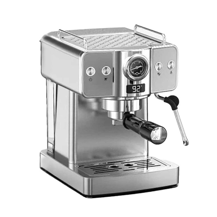 عملکرد و طراحی: این اسپرسوساز با چهار دکمه اصلی شامل روشن/خاموش، حالت تولید بخار، تهیه اسپرسو تک و دوبل، و یک دکمه قطع خودکار، به همراه نمایشگر LED برای نمایش دما و تایمر، به راحتی تنظیمات دلخواه شما را فراهم میآورد. همچنین، دکمههای تنظیم برای اسپرسو تک و دوبل دارای قابلیت ویرایش زمان هستند.