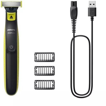 2 عدد شانه محافظ بدن, 3 عدد تیغه یدک, 3 عدد شانه اصلاح صورت, کابل شارژ USB
