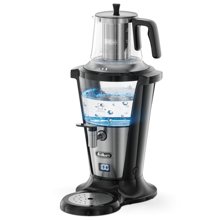 درب اضافی جهت جوش آوردن آب مثل کتری, ,, سینی چکه ریز, ,, صافی توری داخل قوری, ,, حلقه سیلیکونی در قسمت زیر قوری